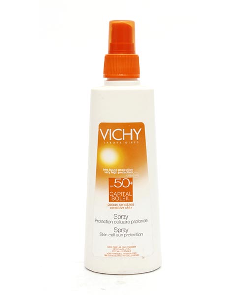 Спрей SPF 50 + Виши Капитал Солей обеспечивает высокую защиту для самых требовательных и чувствительной кожи. Эта солнечная батарея обеспечивает глубокое защиту. Он содержит Mexoryl XL и минеральные солнцезащитные. парабенов и отдушек, это гипоаллергенный (сформулированы, чтобы минимизировать риск возникновения аллергии) и водостойкий.