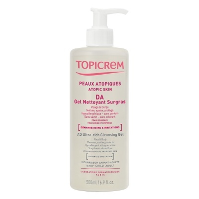 Применить на влажную кожу, вспенить и смыть. Сухой мягко без трения Пуй применять бальзам смягчающее Topicrem DA.