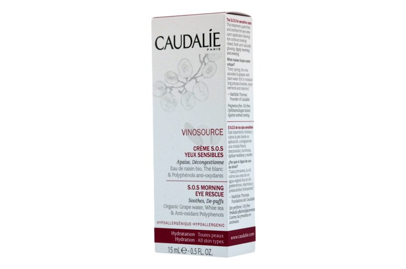 Caudalie Vinosource SOS чувствительных глаз крем 15 мл успокоить и разгрузить глаза, а также предоставление интенсивное увлажнение. Она подходит для всех типов кожи. Эта кожа гидратации лечения горла и успокаивает при подаче заявки на свежий, яркий и свежий вид. Он обогащен органическим воде виноград, белый чай полифенолы и антиоксиданты. Аромат, Нет минеральные масла, парабены, феноксиэтанол, фталаты, сульфат натрия, лаурет, ингредиентов животного происхождения. Офтальмолог испытания. Гипоаллергенна.